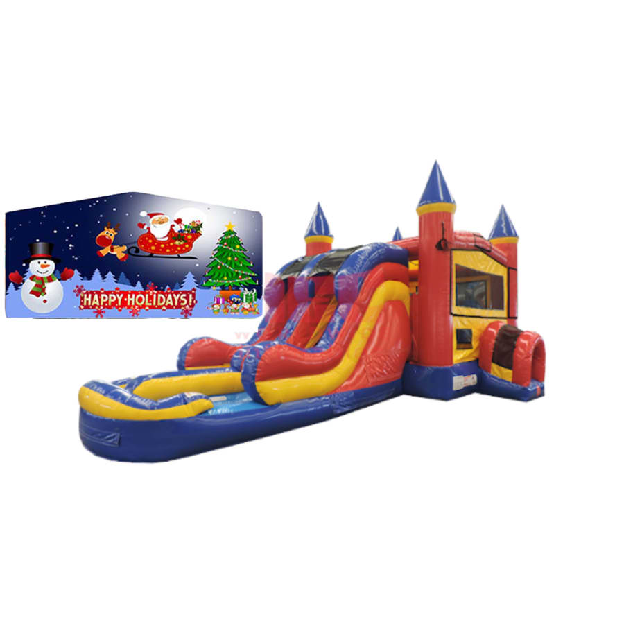 Happy Holidays Dry Dual Lane Castle With Slide Christmas