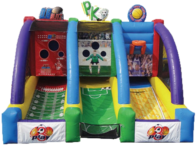 The 3-N-1 Sports Game delivers three competitive sports in one inflatable arena. Fast setup. Big thrills. Perfect for parties, fundraisers, school events, and sports camps. Players switch between basketball, football, and soccer to test accuracy, speed, and teamwork. Durable construction and clear play zones ensure safe, nonstop action for youth and adults alike. 🏆