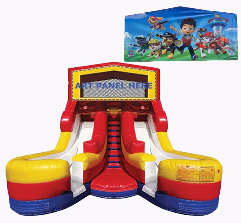 Double the Fun, Double the Excitement, Double the Splash! The definition of cool ! This Slide is Awesome with a capital A!!!!! Head through the Spike Entrance, Climb the stairs, choose left or right and race your friends to the bottom for some Serious Splash FUN – Repeat. Note: Slide can be used Wet or Dry