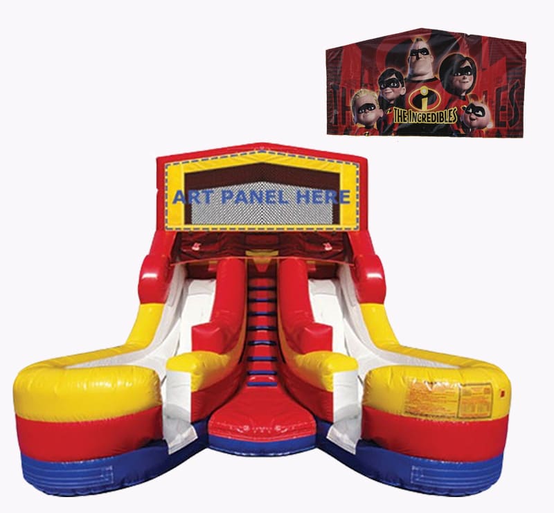 Double the Fun, Double the Excitement, Double the Splash! The definition of cool ! This Slide is Awesome with a capital A!!!!! Head through the Spike Entrance, Climb the stairs, choose left or right and race your friends to the bottom for some Serious Splash FUN – Repeat. Note: Slide can be used Wet or Dry