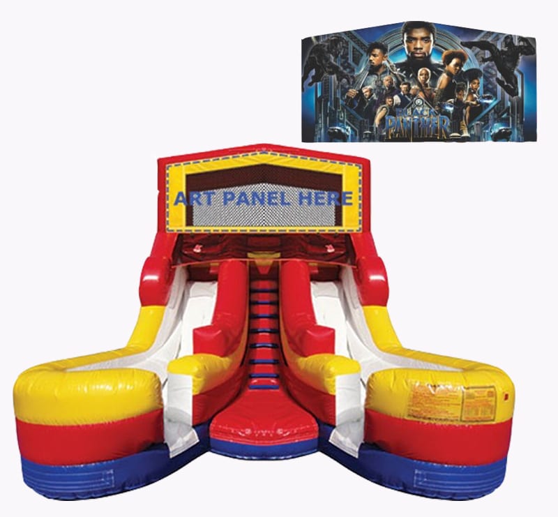 Double the Fun, Double the Excitement, Double the Splash! The definition of cool ! This Slide is Awesome with a capital A!!!!! Head through the Spike Entrance, Climb the stairs, choose left or right and race your friends to the bottom for some Serious Splash FUN – Repeat. Note: Slide can be used Wet or Dry